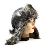 Шапка ушанка женская, Чёрная плащёвка, мех Шиншилла NEW
